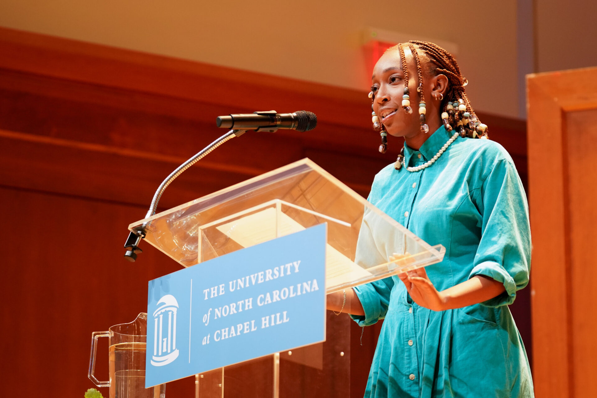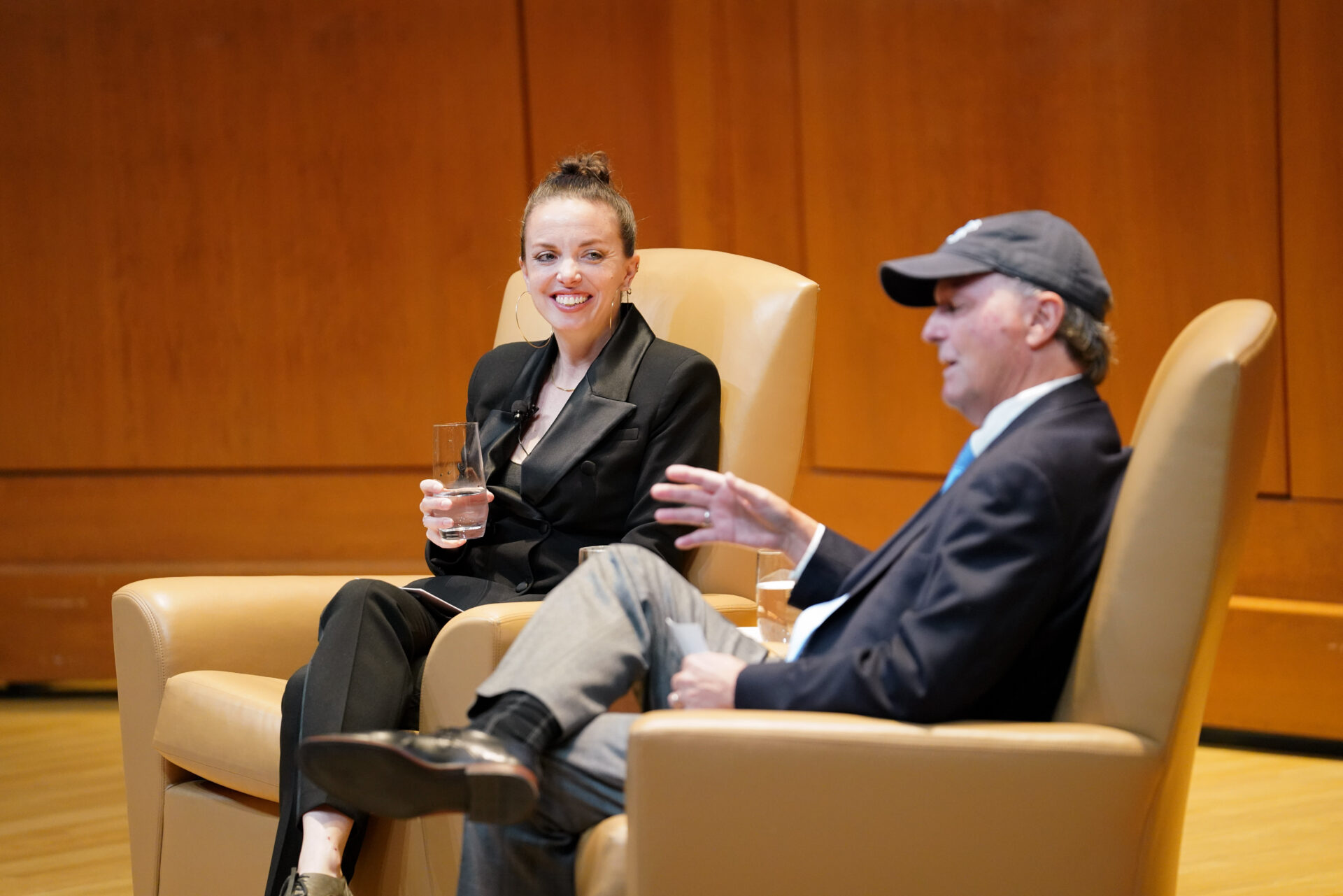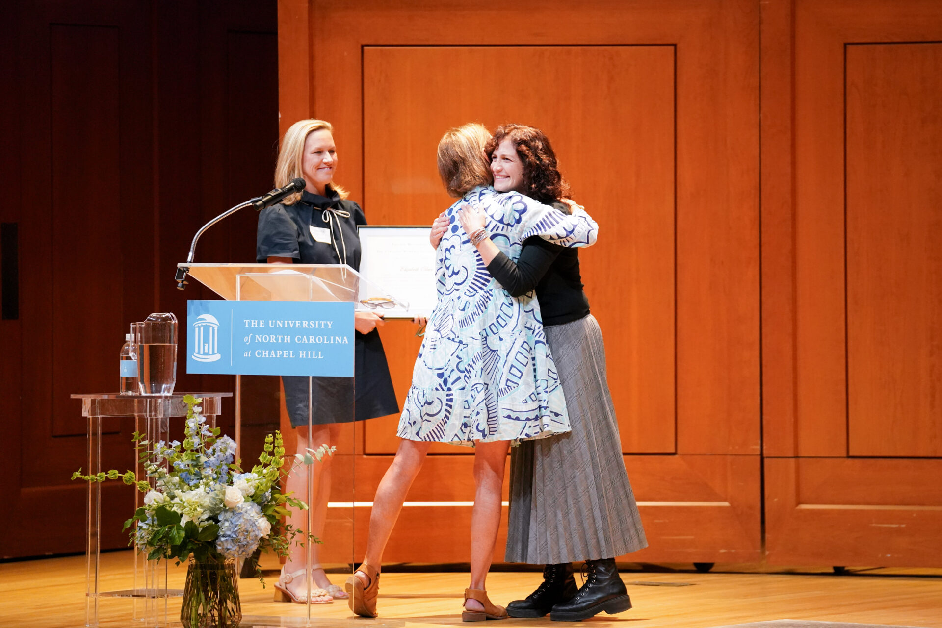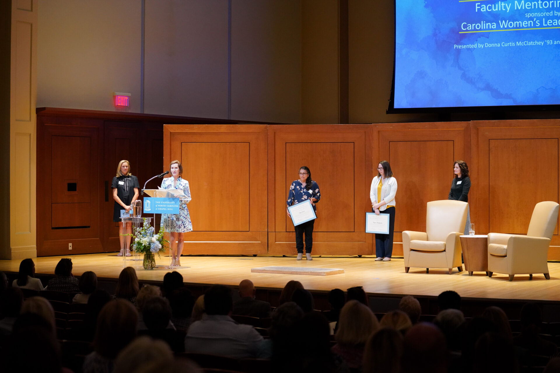 UNC Chancellor Kevin M. Guskiewicz and UNC Student Body President Taliajah Vann gave an opening speech for the Eve Marie Carson Lecture Series in Moeser Auditorium in Hill Hall on Sept. 28th, 2022, followed by a lecture and performance from Michelle Dorrance, founder and artistic director of the award-winning tap dance company Dorrance Dance. Following her talk, keynote lecturer Michelle Dorrance joined in a conversation with her father, Anson Dorrance, head coach of UNC Women’s Soccer.